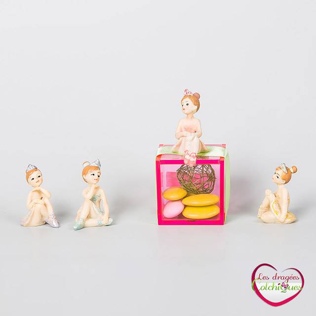 Bonbonnière pour dragées carré en plastique avec figurine danseuse.