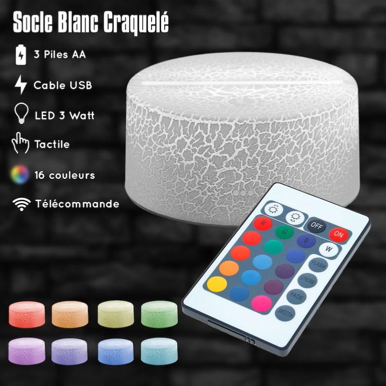 Trés facile à utiliser vous n'aurez qu'à installer 3 piles sous le dessous du socle ou encore la brancher avec notre câble USB ensuite vous pourrez l'éclairer grâce à la télécommande ou tout simplement appuyer sur le dessus du socle.